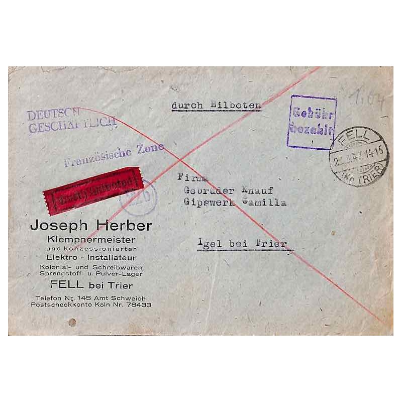Lettre Exprès locale du 27-3-1947 Cachet encadré sur 2 lignes