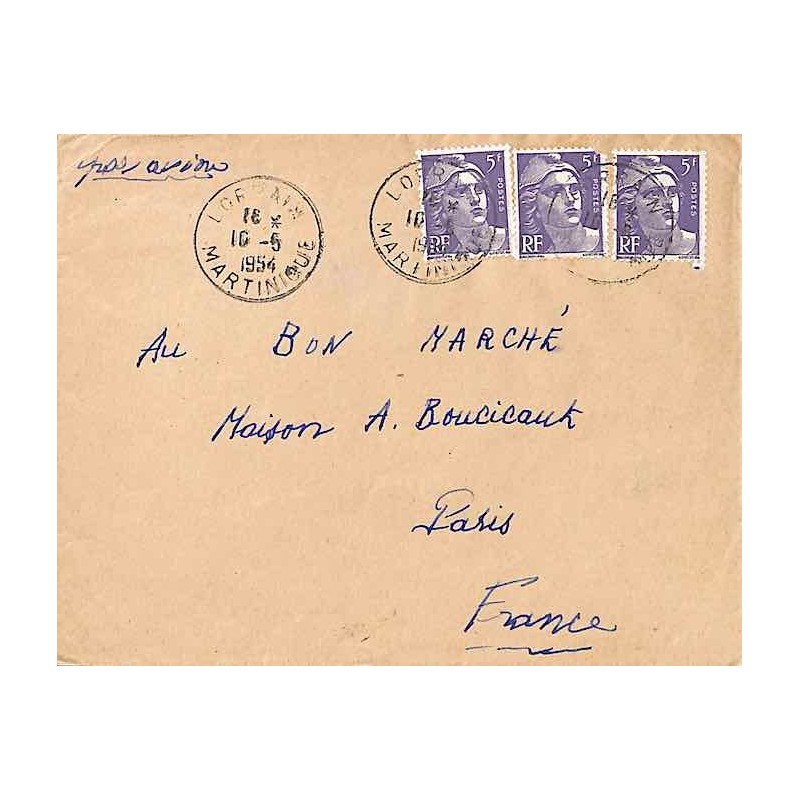 Lettre par avion Oblitération LORRAIN MARTINIQUE 1954