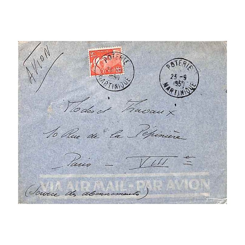 Lettre par avion Oblitération POTERIE MARTINIQUE 1950
