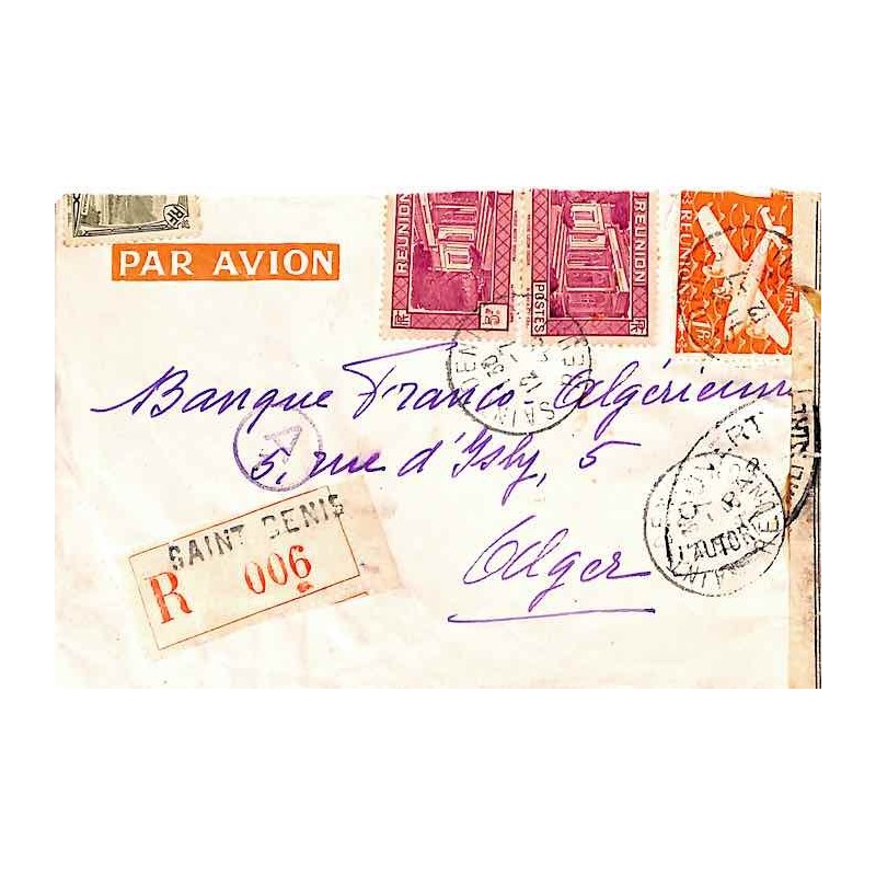 Enveloppe recommandée avion pour l’Algérie Affranchissement 12 f.