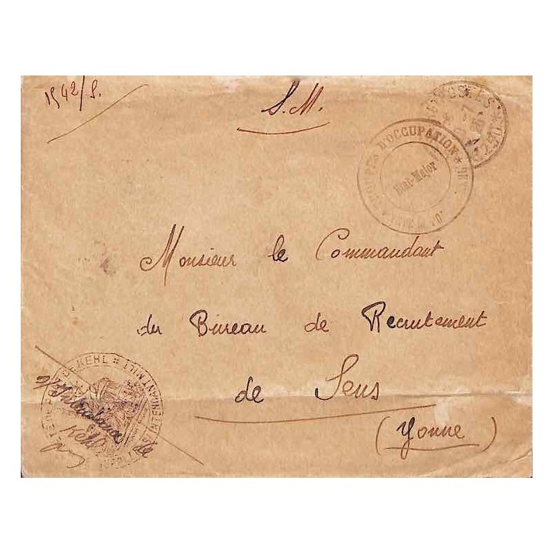 Enveloppe en FM 1925 Timbre à date TRESOR ET POSTES * 250 * Cachet violet TETE DE PONT DE KEHL * LE SUPPLt DU S/INTENDANT MILT * / Déesse