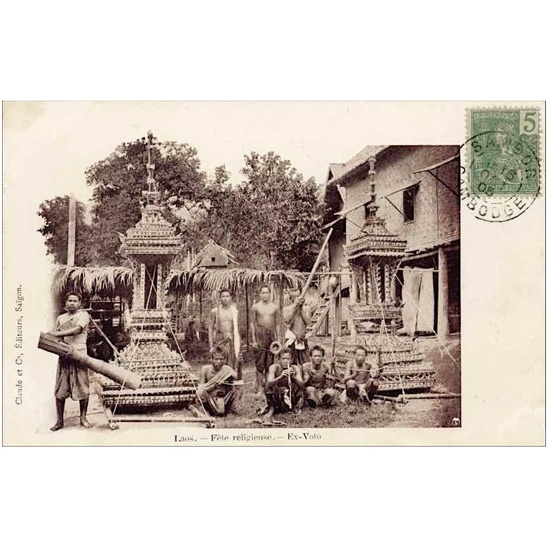 Carte postale 1905 Affranchissement Indochine 27 Cachet à date SAMBOR CAMBODGE
