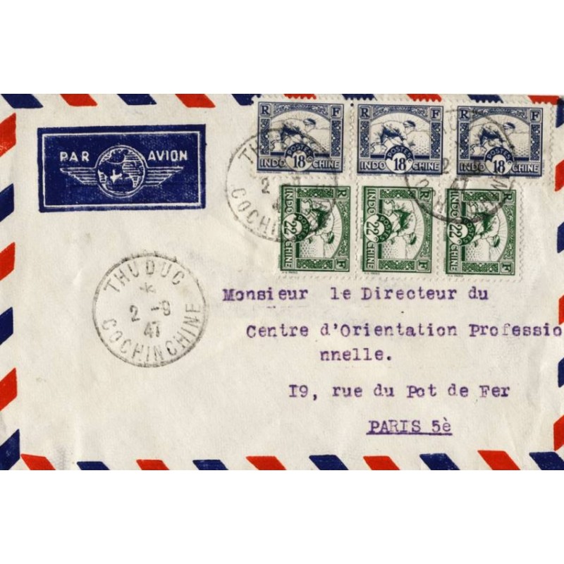 Enveloppe avion 1947 Affranchissement 162B (x3) 164B (x3) Oblitération timbre à date THU DUC COCHINCHINE