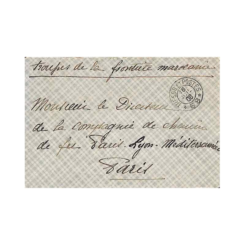 Enveloppe FM juil 1908 Manuscrit Troupes de la frontière marocaine
