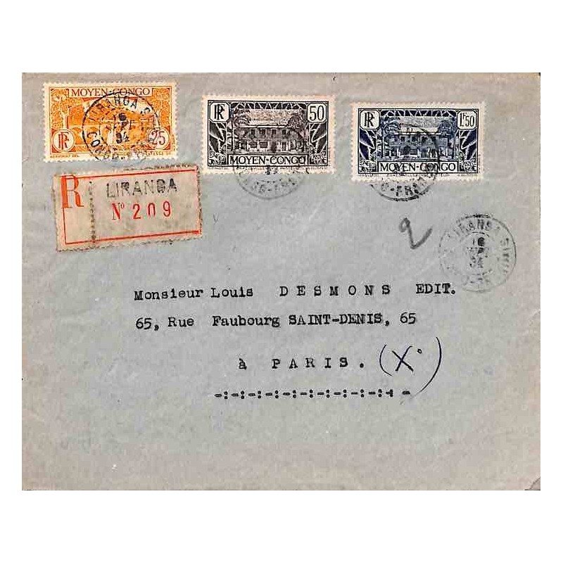 Enveloppe recommandée 1934 Oblitértion LIRANGA CONGO - FRANCAIS