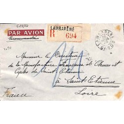 Enveloppe recommandée avion pour la France avril 1940 Affranchissement 6 f. au verso par AEF 54 (x 4)