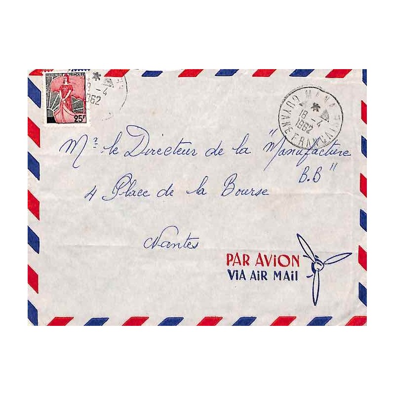 Enveloppe avion (léger défaut) Affranchissement France Oblitération MANA GUYANE FRANCAISE 1962