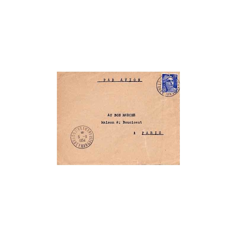 Devant d'enveloppe . avion Affranchissement France Oblitération SINNAMARY GUYANE FRANCAISE 1954