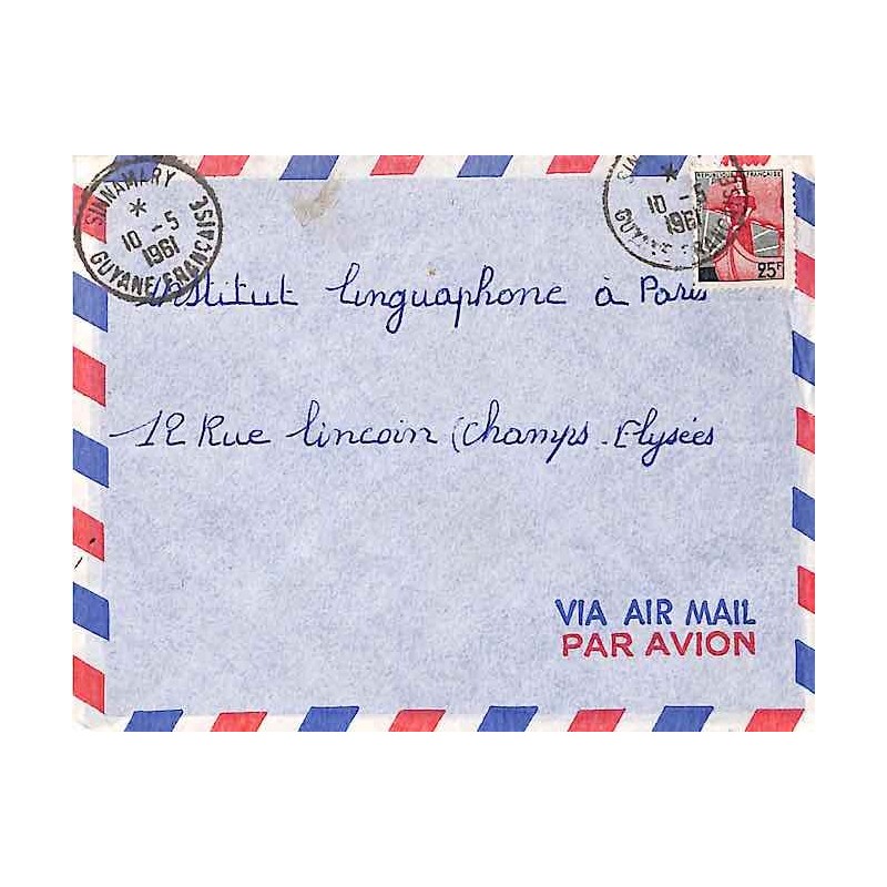 Enveloppe avion Affranchissement France Oblitération SINNAMARY GUYANE FRANCAISE 1961