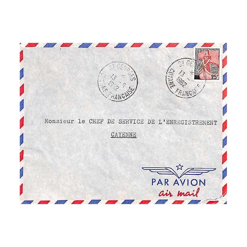 Enveloppe (verso léger defaut) Affranchissement France Oblitération ST GEORGES GUYANE FRANCAISE 1962