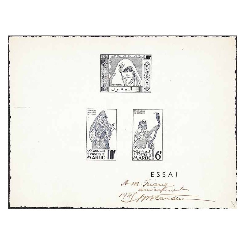 avec 3 figurines imprimées Dédicace “A M. Friang. Amicalement 1945 M. Flandrin”