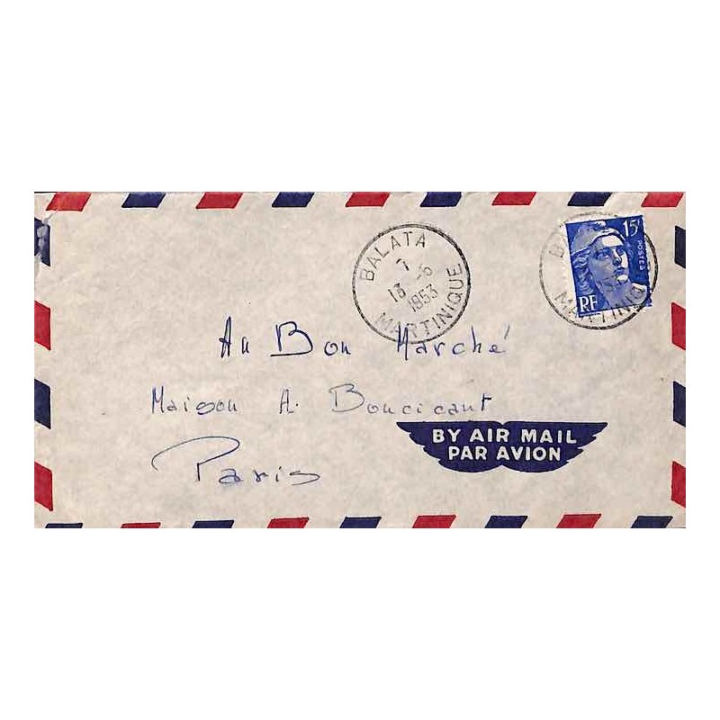 Lettre avion 1953 Affranchissement France Oblitération BALATA MARTINIQUE