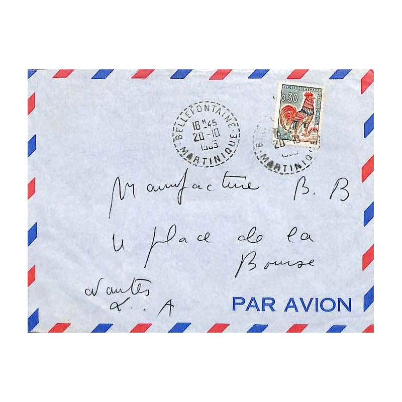 Lettre 1965 Affranchissement France Oblitération BELLEFONTAINE MARTINIQUE