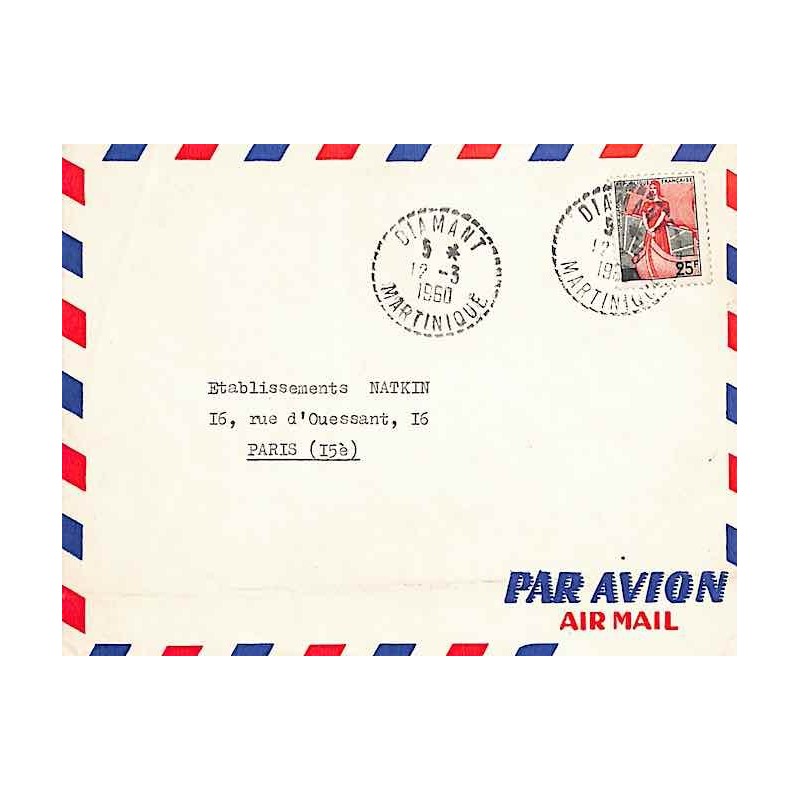 Lettre avion 1960 Affranchissement France Oblitération DIAMANT MARTINIQUE (lettres serrées)
