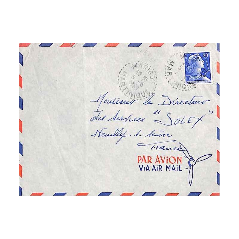 Lettre avion 1959 Affranchissement France Oblitération MARIGOT MARTINIQUE