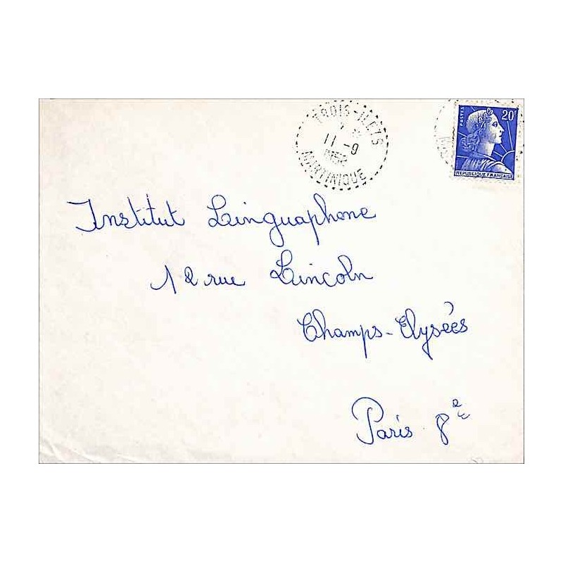 Lettre 1958 Affranchissement France Oblitération TROIS-ILETS MARTINIQUE