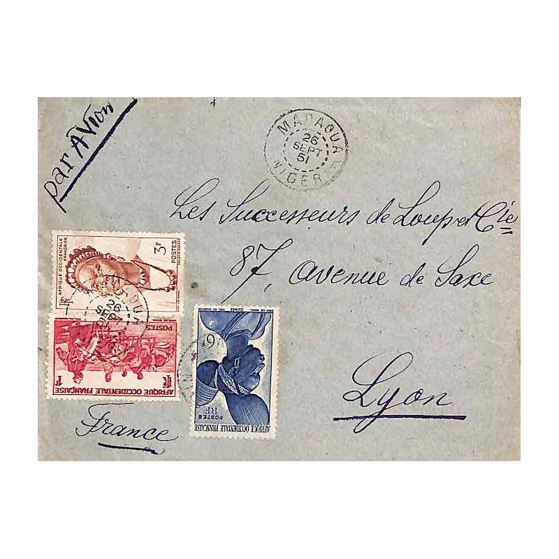 Enveloppe avion pour la France 1951 Affranchissement à 10 f Oblitération MADAOUA NIGER
