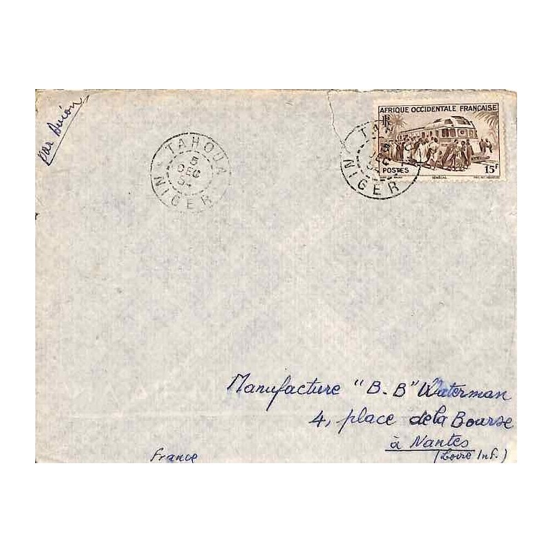 Lettre avion 1954 Affranchissement Aof 40 Oblitération TAHOUA NIGER (léger défaut)