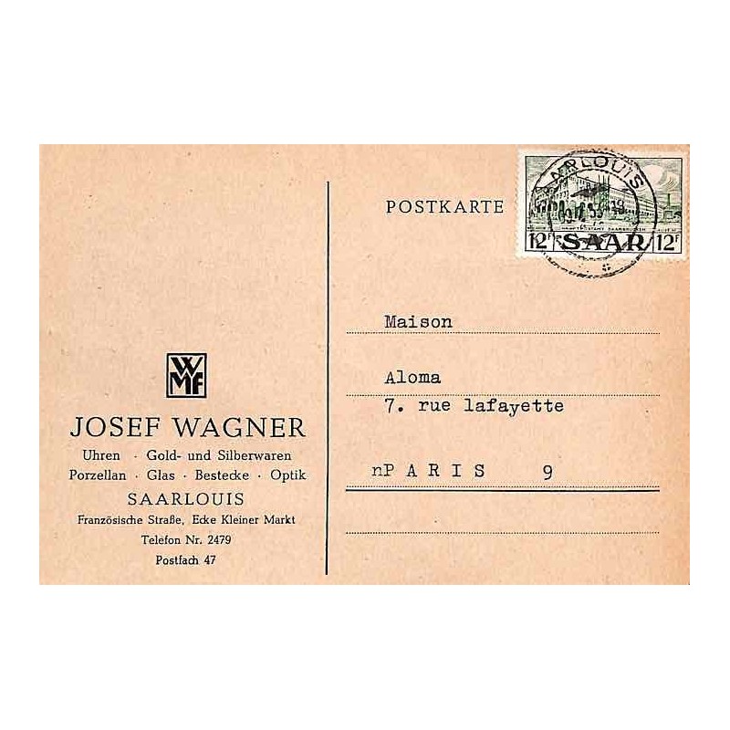 Carte postale commerciale pour la France 1953 Affranchissement 312