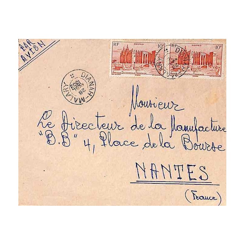 Lettre avion, Affranchissement AOF 39 (x2) Timbre à date rare