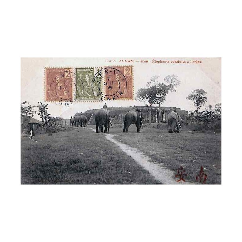 Carte postale 1906 Affranchissement 24, 25 (x2) Oblitération TIEN - YEN TONKIN