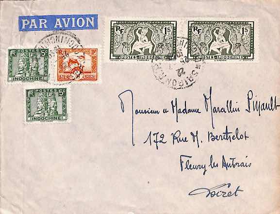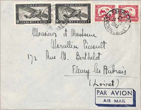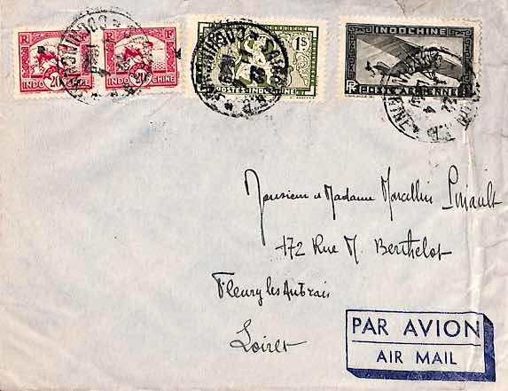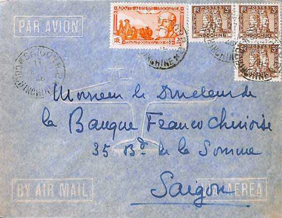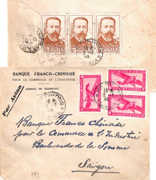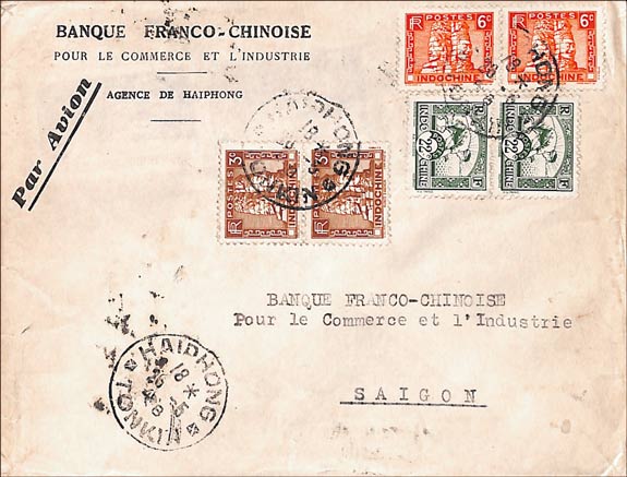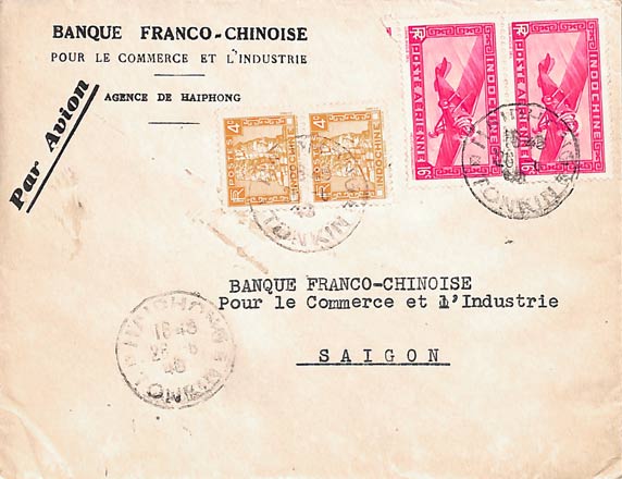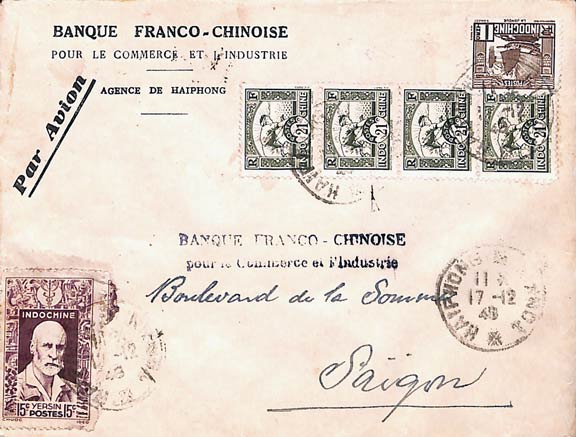 INDO1038 Lettre par avion pour Saigon 1949 Affranchissement à 3 $ Oblitération HAIPHONG * TONKIN * : € 7