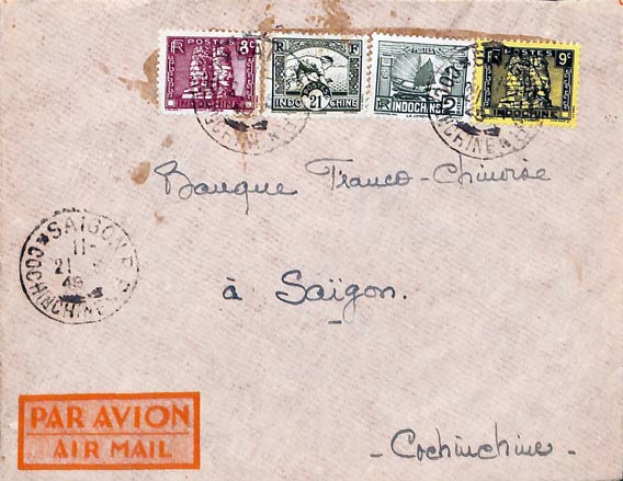 INDO1079 Lettre locale 16-4-1948 Affranchissement à 41 c par 157 (x3) PA2, PA7 Oblitération SAIGON RP * COCHINCHINE * : € 5