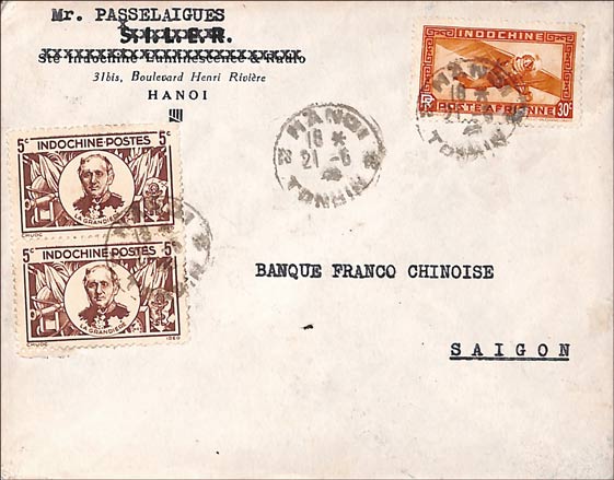 INDO1080 Lettre intérieur 21-6-1948 Affranchissement à 40 c par 264 (x2) PA7 Oblitération HANOI * TONKIN * : € 8