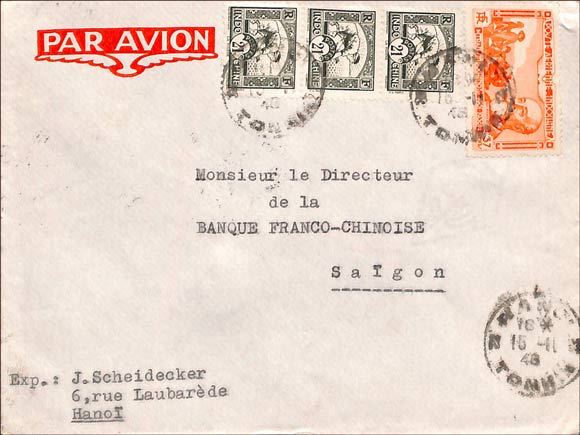 INDO1081 Lettre intérieur 15-11-1948 Affranchissement à 1 $ par 164 (x3) PA15 Oblitération HANOI * TONKIN * : € 6