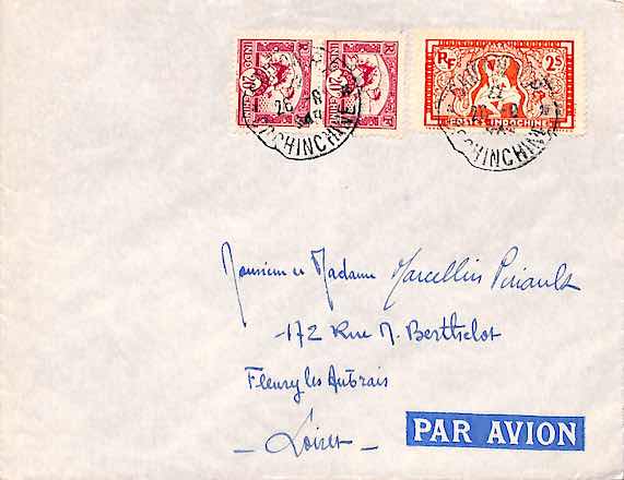INDO724 Env. Avion pour la France 1949 Affr. 163 (x2) 170 Tad SAIGON * COCHINCHINE * : € 3