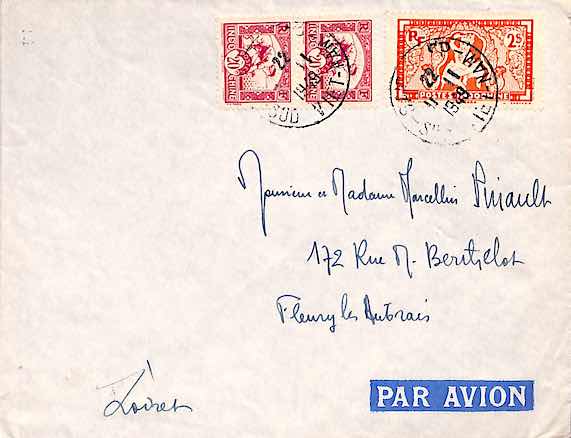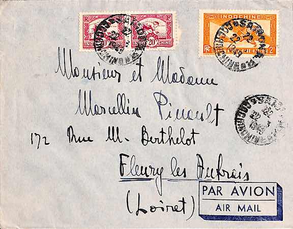 VNM0720 Env. avion pour la France 1949 Affr. 163 (x2) 170 Oblitération SAIGON - SUD VIETNAM - : € 3