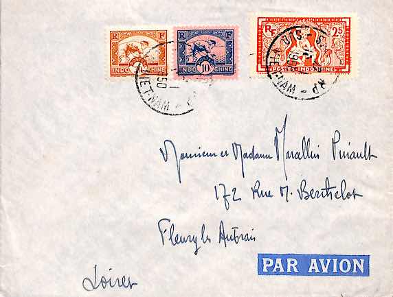 VNM0727 Env. avion pour la France 1949 Affr. 166, 170, 216 Oblitération SAIGON - SUD VIETNAM - : € 3