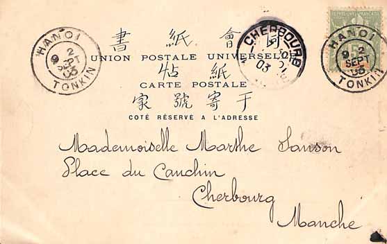 INDO0685 CP 1903 Affr. 6 Tad HANOI TONKIN : € 6